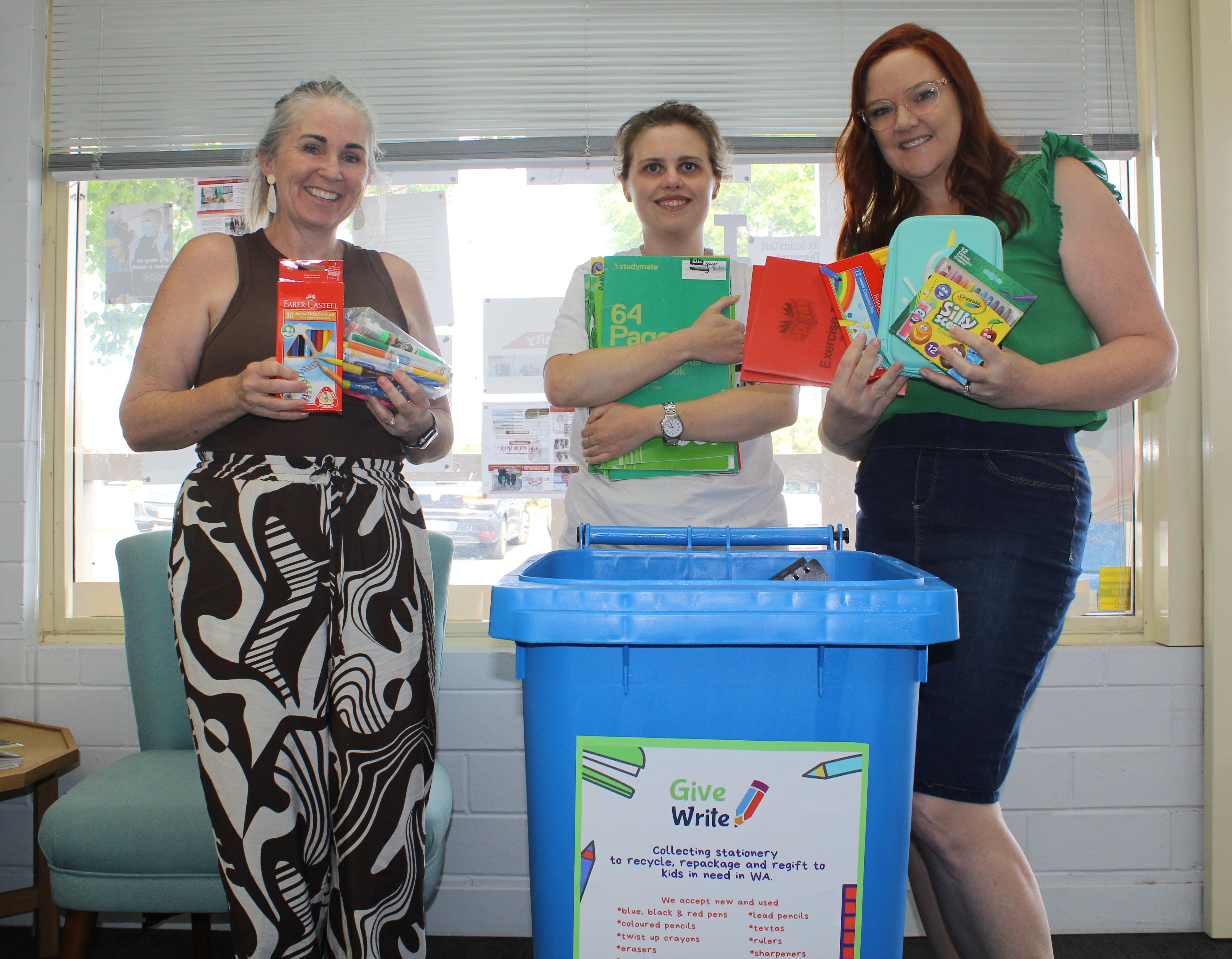 The blue bin is outside our office during working hours - please do a spring clean at home and put any extra exercise books, lined or blank paper, art supplies and classroom stationary (scissors, rulers, blue sticks, new water bottles etc) in our bin. Check www.givewrite.org.au or the bin with the list of donatable items.
